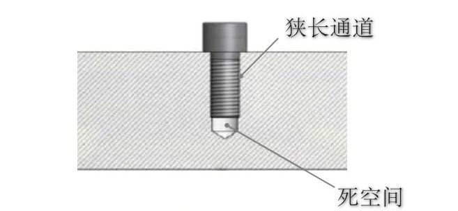 真實(shí)的泄漏可以通過檢漏找到,放氣也可以通過清洗真空腔體內(nèi)表面而解決,而虛漏一旦產(chǎn)生,很難被發(fā)現(xiàn),需要在設(shè)計(jì)和制造時(shí)盡量避免容易產(chǎn)生虛漏的結(jié)構(gòu)或工藝,如上圖中的螺紋連接(一定要用的話可以使用空心螺栓),很長的狹縫或毛細(xì)管,兩側(cè)滿焊的腔體焊接(較厚的殼體建議真空側(cè)滿焊大氣側(cè)斷續(xù)焊)等等。